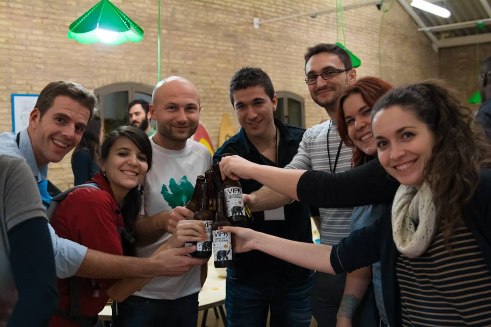 DÍA 1 – PRESENTAR IDEAS Y CREAR GRUPOS: Se presentan 7 ideas de negocio. Cada participante se decanta por la que más le gusta para participar en su desarrollo, formando así 7 equipos de trabajo. Seguido viene un afterwork para una primera toma de contacto entre los asistentes; esto les sirve para conocerse en un ambiente distendido y para intercambian impresiones e ideas sobre el proyecto en el que van a estar colaborando todo el fin de semana. Esa noche, ya hay grupos que empiezan a trabajar.