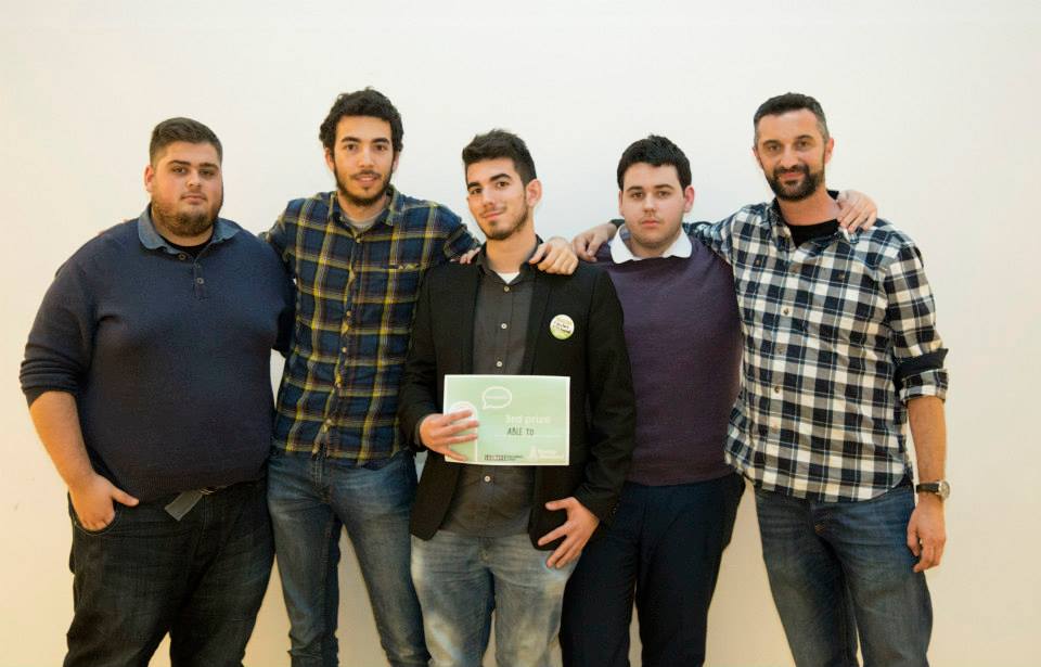 5A – El alumno Dani LLeo y su equipo luciendo su 1º premio por la app Kania